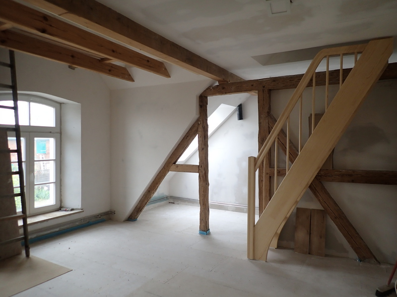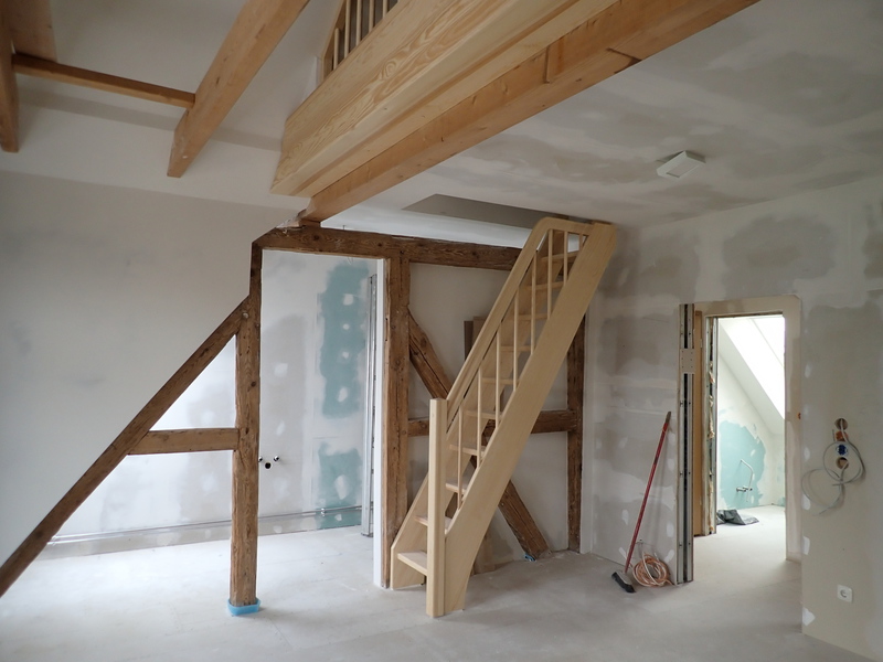 Die Wohnung ist über eine massive Eichentreppe in das Obergeschoss erreichbar.